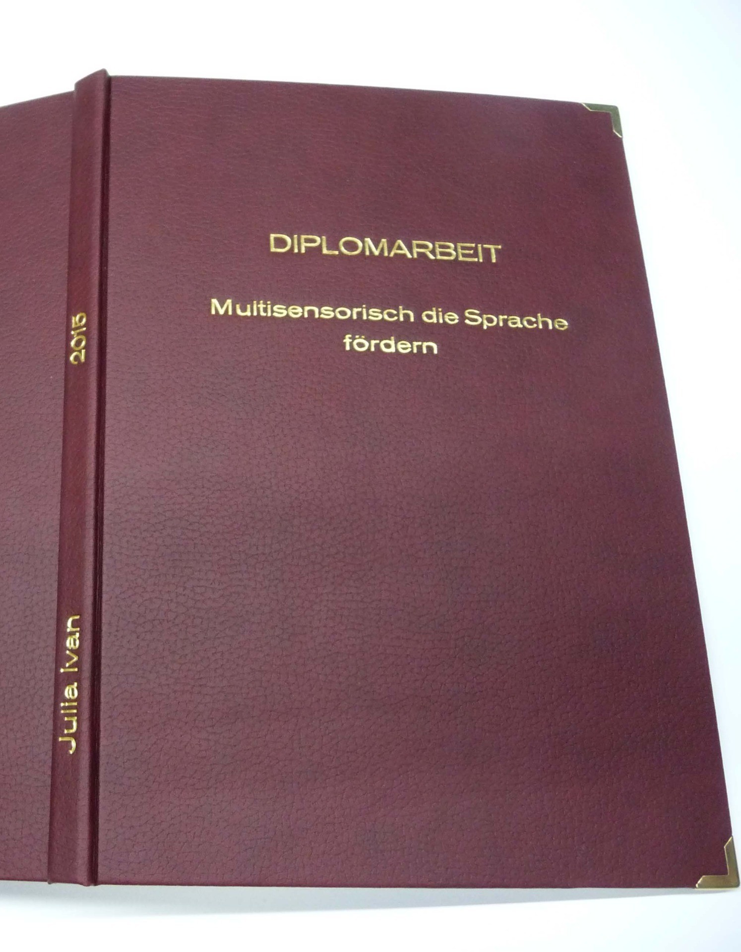 Natürlich kann man auch hier den Titel, Autor sowie alle anderen Angaben in den Einband prägen, stanzen oder drucken.